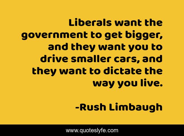 This page presents the quote "Liberals want the government to get bigger, and they want you to drive smaller cars, and they want to dictate the way you live.". Author of this quote is Rush Limbaugh. This quote is about live, government,.