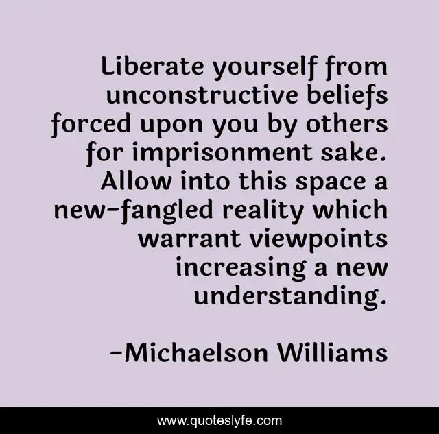 "Michaelson Williams Quotes." Quoteslyfe.com, 2025. Fri. 05 Dec. 2025. <https://www.quoteslyfe.com/quote/Liberate-yourself-from-unconstructive-beliefs-forced-upon-109611>.
