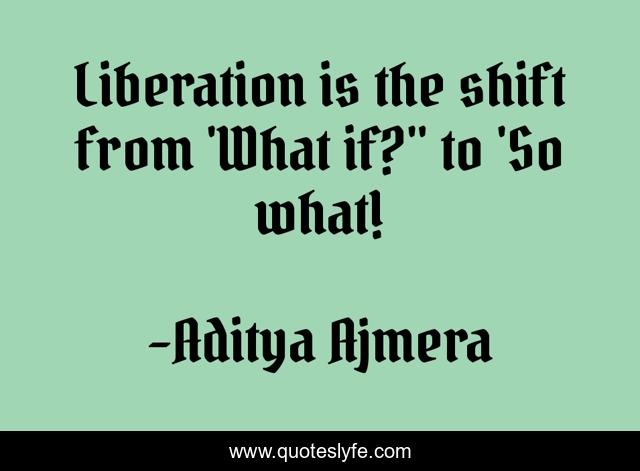 This page presents the quote "Liberation is the shift from 'What if?" to 'So what!". Author of this quote is Aditya Ajmera. This quote is about freedom, life, awareness, liberation,.
