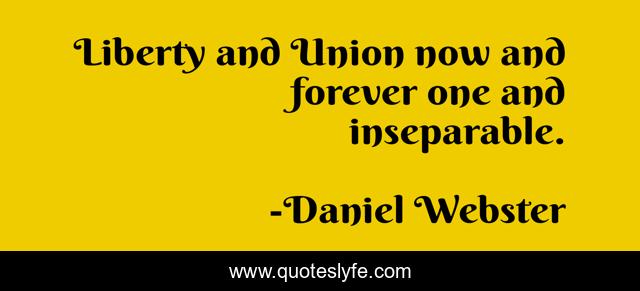 This page presents the quote "Liberty and Union now and forever one and inseparable.". Author of this quote is Daniel Webster. .