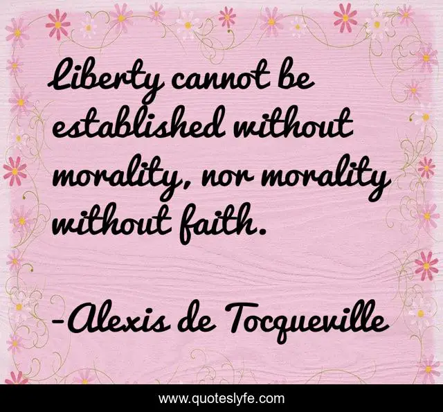 "Alexis de Tocqueville Quotes." Quoteslyfe.com, 2025. Sat. 06 Dec. 2025. <https://www.quoteslyfe.com/quote/Liberty-cannot-be-established-without-morality-nor-313933>.