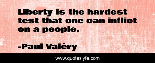 This page presents the quote "Liberty is the hardest test that one can inflict on a people.". Author of this quote is Paul Valéry. This quote is about freedom, conservatism, liberty,.