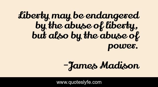 "James Madison Quotes." Quoteslyfe.com, 2025. Sat. 06 Dec. 2025. <https://www.quoteslyfe.com/quote/Liberty-may-be-endangered-by-the-abuse-304919>.