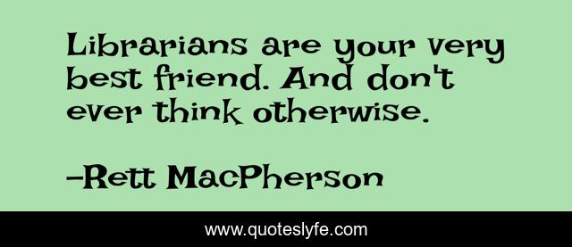 "Rett MacPherson Quotes." Quoteslyfe.com, 2025. Sat. 06 Dec. 2025. <https://www.quoteslyfe.com/quote/Librarians-are-your-very-best-friend-And-43274>.