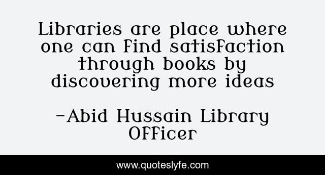 This page presents the quote "Libraries are place where one can find satisfaction through books by discovering more ideas". Author of this quote is Abid Hussain Library Officer. .