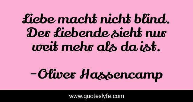 This page presents the quote "Liebe macht nicht blind. Der Liebende sieht nur weit mehr als da ist.". Author of this quote is Oliver Hassencamp. This quote is about romance, love, affection,.
