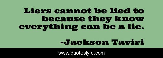 This page presents the quote "Liers cannot be lied to because they know everything can be a lie.". Author of this quote is Jackson Taviri. .