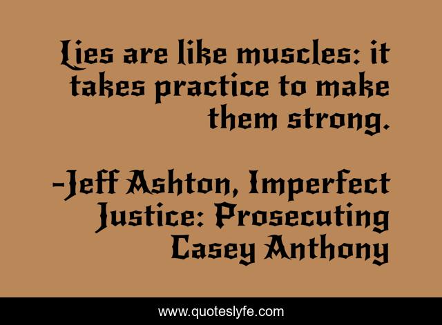 This page presents the quote "Lies are like muscles: it takes practice to make them strong.". Author of this quote is Jeff Ashton, Imperfect Justice: Prosecuting Casey Anthony. .