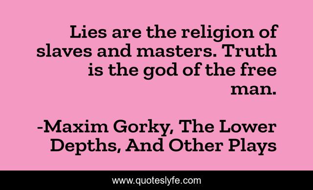 This page presents the quote "Lies are the religion of slaves and masters. Truth is the god of the free man.". Author of this quote is Maxim Gorky, The Lower Depths, And Other Plays. .