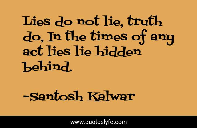 This page presents the quote "Lies do not lie, truth do, In the times of any act lies lie hidden behind.". Author of this quote is Santosh Kalwar. This quote is about enthusiasm, inspirational, truth,.
