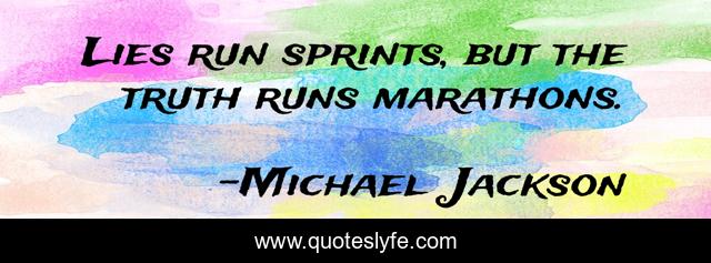 This page presents the quote "Lies run sprints, but the truth runs marathons.". Author of this quote is Michael Jackson. This quote is about lies, truth,.