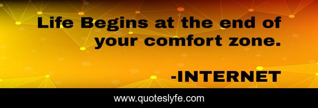 This page presents the quote "Life Begins at the end of your comfort zone.". Author of this quote is INTERNET. This quote is about motivational-inspirational, life, motivation,.