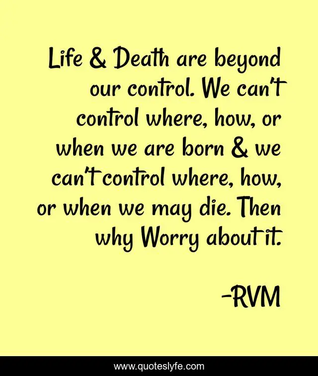 This page presents the quote "Life & Death are beyond our control. We can’t control where, how, or when we are born & we can’t control where, how, or when we may die. Then why Worry about it.". Author of this quote is RVM. This quote is about motivation, inspiration,.