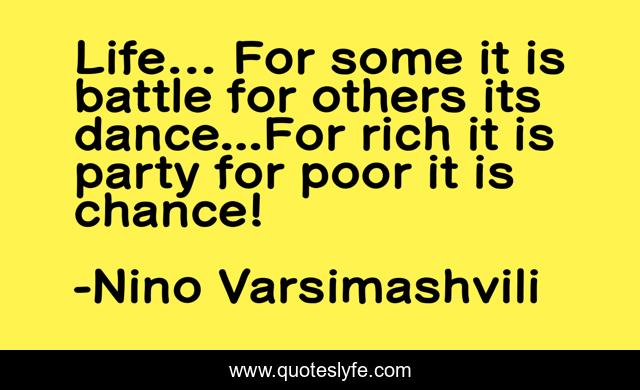 This page presents the quote "Life… For some it is battle for others its dance...For rich it is party for poor it is chance!". Author of this quote is Nino Varsimashvili. This quote is about poor, life, dance, chance, rich, battle, party,.