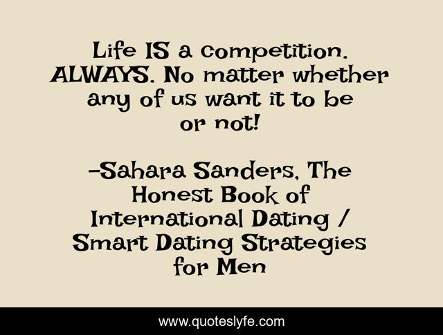 "Sahara Sanders, The Honest Book of International Dating / Smart Dating Strategies for Men Quotes." Quoteslyfe.com, 2025. Fri. 05 Dec. 2025. <https://www.quoteslyfe.com/quote/Life-IS-a-competition-ALWAYS-No-matter-38316>.
