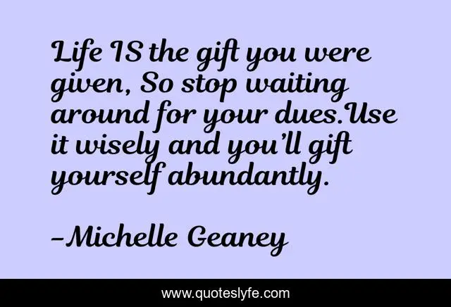 This page presents the quote "Life IS the gift you were given, So stop waiting around for your dues.Use it wisely and you’ll gift yourself abundantly.". Author of this quote is Michelle Geaney. This quote is about gifts, quotes-to-live-by, life,.
