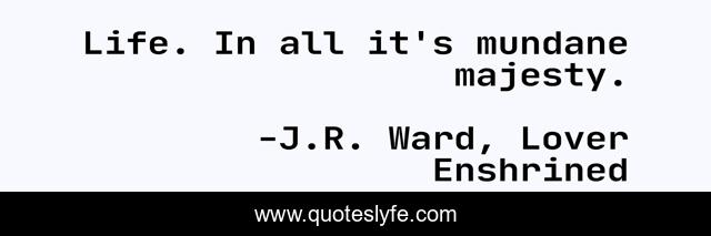 "J.R. Ward, Lover Enshrined Quotes." Quoteslyfe.com, 2025. Tue. 09 Dec. 2025. <https://www.quoteslyfe.com/quote/Life-In-all-it-s-mundane-majesty-222302>.