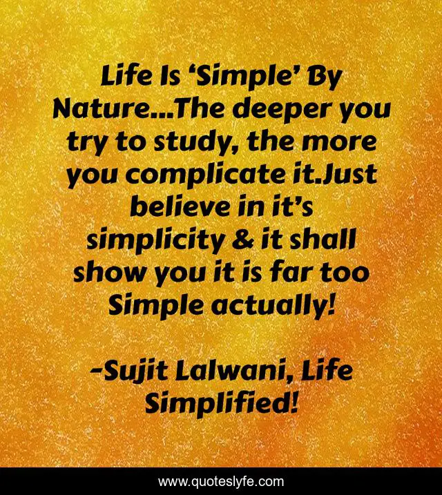 "Sujit Lalwani, Life Simplified! Quotes." Quoteslyfe.com, 2025. Sat. 06 Dec. 2025. <https://www.quoteslyfe.com/quote/Life-Is-Simple-By-Nature-The-deeper-28793>.