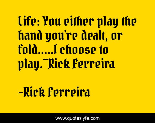 This page presents the quote "Life: You either play the hand you're dealt, or fold.....I choose to play.~Rick Ferreira". Author of this quote is Rick Ferreira. .