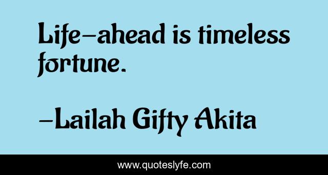 This page presents the quote "Life-ahead is timeless fortune.". Author of this quote is Lailah Gifty Akita. This quote is about life, life-experience, life-philosophy, future, future-of-man, future-present, fortune, future-inspirational, fortune-seeking,.