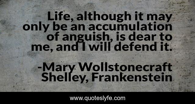 This page presents the quote "Life, although it may only be an accumulation of anguish, is dear to me, and I will defend it.". Author of this quote is Mary Wollstonecraft Shelley, Frankenstein. .