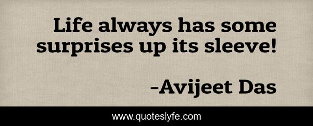 This page presents the quote "Life always has some surprises up its sleeve!". Author of this quote is Avijeet Das. This quote is about life, meaning-of-life, writers-life, surprises, writers, sleeves, life-philosophy, writers-on-writing,.