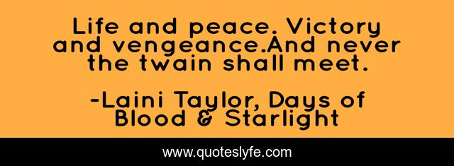 This page presents the quote "Life and peace. Victory and vengeance.And never the twain shall meet.". Author of this quote is Laini Taylor, Days of Blood & Starlight. This quote is about state-of-mind, peace, vengeance,.