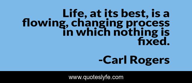 This page presents the quote "Life, at its best, is a flowing, changing process in which nothing is fixed.". Author of this quote is Carl Rogers. This quote is about enthusiasm, philosophy-of-life, inspirational,.