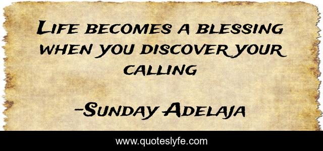 This page presents the quote "Life becomes a blessing when you discover your calling". Author of this quote is Sunday Adelaja. This quote is about life, blessing, finance, money, beauty-in-life, work, calling, job, purpose,.