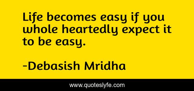 This page presents the quote "Life becomes easy if you whole heartedly expect it to be easy.". Author of this quote is Debasish Mridha. This quote is about life, how-to-make-life-easy, philosophy, debasish-mridha, quotes, inspirational, enthusiasm, don-t-expect-life-to-be-easy, debasish-mridha-m-d,.