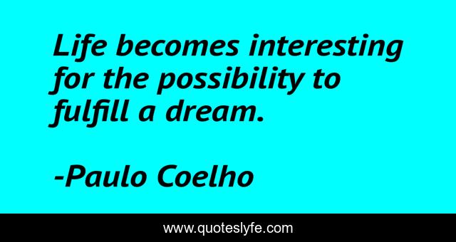 This page presents the quote "Life becomes interesting for the possibility to fulfill a dream.". Author of this quote is Paulo Coelho. This quote is about coelho, alchemist, life, dream,.