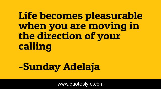 This page presents the quote "Life becomes pleasurable when you are moving in the direction of your calling". Author of this quote is Sunday Adelaja. This quote is about kingdom, life, love, jobless, service, people, money, god, work,.