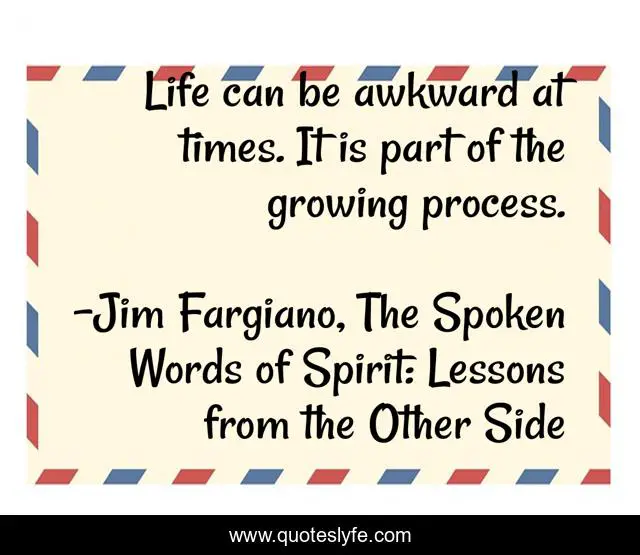 "Jim Fargiano, The Spoken Words of Spirit: Lessons from the Other Side Quotes." Quoteslyfe.com, 2025. Fri. 05 Dec. 2025. <https://www.quoteslyfe.com/quote/Life-can-be-awkward-at-times-It-141544>.