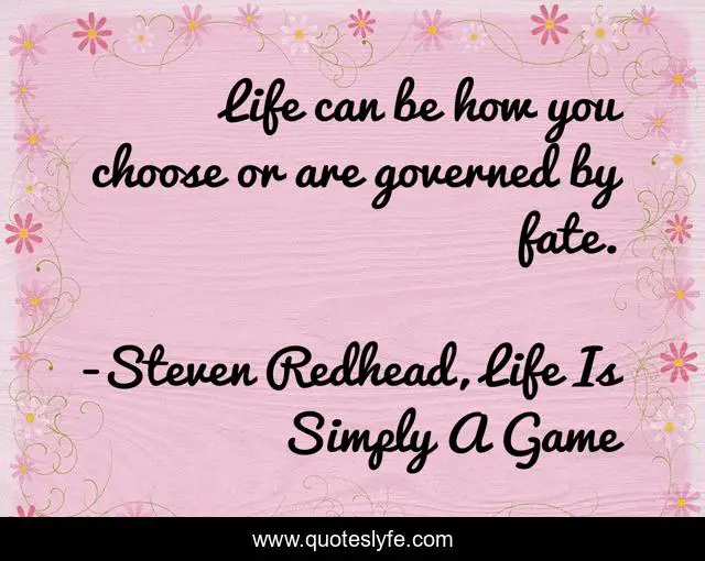 This page presents the quote "Life can be how you choose or are governed by fate.". Author of this quote is Steven Redhead, Life Is Simply A Game. This quote is about life, fate, choose, governed,.