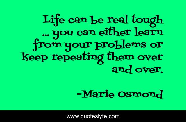 This page presents the quote "Life can be real tough ... you can either learn from your problems or keep repeating them over and over.". Author of this quote is Marie Osmond. .