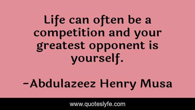 This page presents the quote "Life can often be a competition and your greatest opponent is yourself.". Author of this quote is Abdulazeez Henry Musa. .
