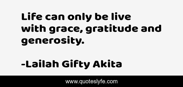This page presents the quote "Life can only be live with grace, gratitude and generosity.". Author of this quote is Lailah Gifty Akita. This quote is about giving, living, life, spiritual,.