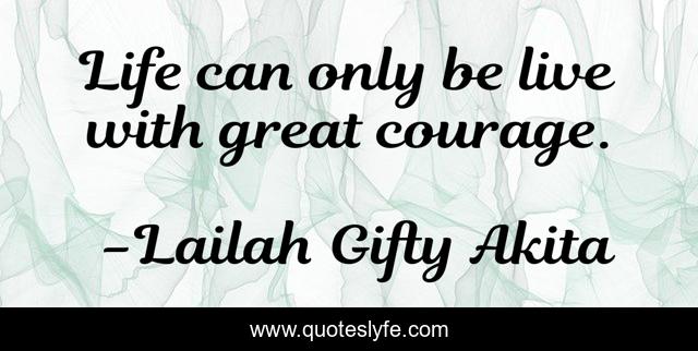 This page presents the quote "Life can only be live with great courage.". Author of this quote is Lailah Gifty Akita. This quote is about living, life, courage, encouragement,.