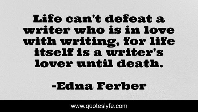 This page presents the quote "Life can't defeat a writer who is in love with writing, for life itself is a writer's lover until death.". Author of this quote is Edna Ferber. This quote is about life, love, affection, writing,.