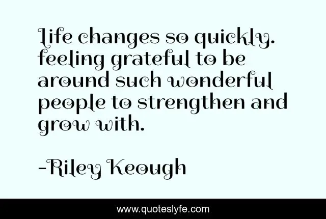 This page presents the quote "Life changes so quickly. feeling grateful to be around such wonderful people to strengthen and grow with.". Author of this quote is Riley Keough. This quote is about changes, grateful,.