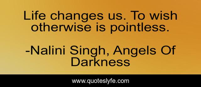 "Nalini Singh, Angels Of Darkness Quotes." Quoteslyfe.com, 2025. Sun. 07 Dec. 2025. <https://www.quoteslyfe.com/quote/Life-changes-us-To-wish-otherwise-is-12768>.