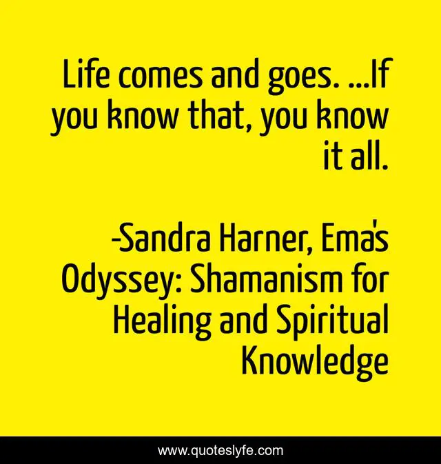 This page presents the quote "Life comes and goes. …If you know that, you know it all.". Author of this quote is Sandra Harner, Ema's Odyssey: Shamanism for Healing and Spiritual Knowledge. This quote is about shamanism, healing, spiritual,.