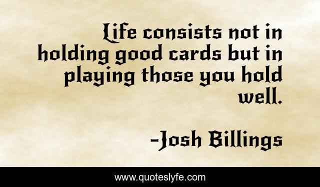 "Josh Billings Quotes." Quoteslyfe.com, 2025. Fri. 05 Dec. 2025. <https://www.quoteslyfe.com/quote/Life-consists-not-in-holding-good-cards-303670>.