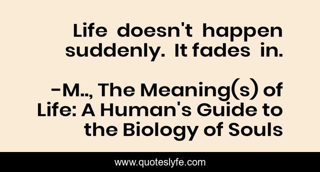 "M.., The Meaning(s) of Life: A Human's Guide to the Biology of Souls Quotes." Quoteslyfe.com, 2025. Sat. 06 Dec. 2025. <https://www.quoteslyfe.com/quote/Life-doesn-t-happen-suddenly-It-fades-178274>.