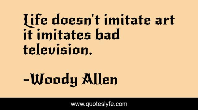 This page presents the quote "Life doesn't imitate art it imitates bad television.". Author of this quote is Woody Allen. This quote is about life, death,.