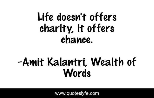 "Amit Kalantri, Wealth of Words Quotes." Quoteslyfe.com, 2025. Mon. 08 Dec. 2025. <https://www.quoteslyfe.com/quote/Life-doesn-t-offers-charity-it-offers-99044>.
