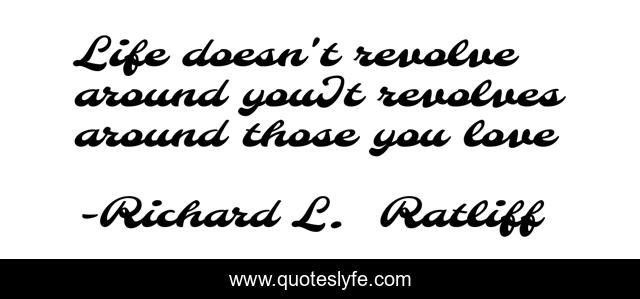 This page presents the quote "Life doesn't revolve around youIt revolves around those you love". Author of this quote is Richard L. Ratliff. This quote is about life, love, family, relationship, wisdom, philosophical, affection, loveones,.