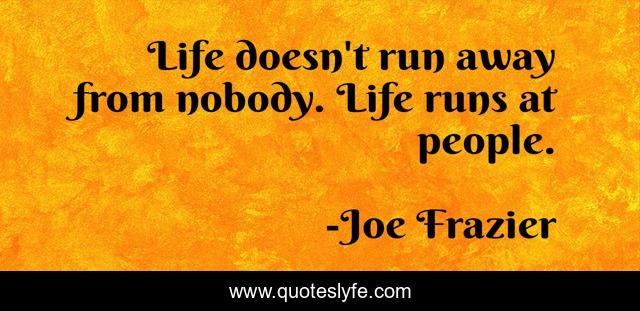 This page presents the quote "Life doesn't run away from nobody. Life runs at people.". Author of this quote is Joe Frazier. This quote is about life, work, self-reliance,.