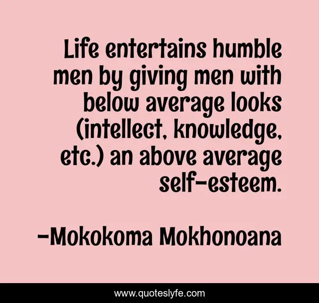 Life entertains humble men by giving men with below average looks (intellect, knowledge, etc.) an above average self-esteem.