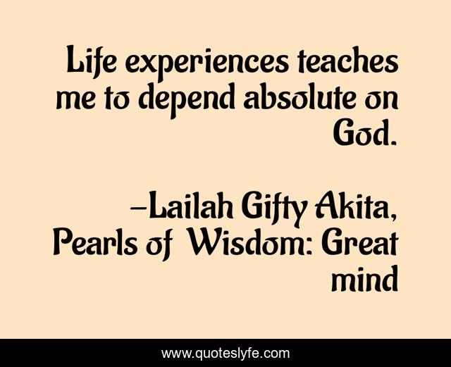 "Lailah Gifty Akita, Pearls of Wisdom: Great mind Quotes." Quoteslyfe.com, 2025. Fri. 05 Dec. 2025. <https://www.quoteslyfe.com/quote/Life-experiences-teaches-me-to-depend-absolute-85362>.